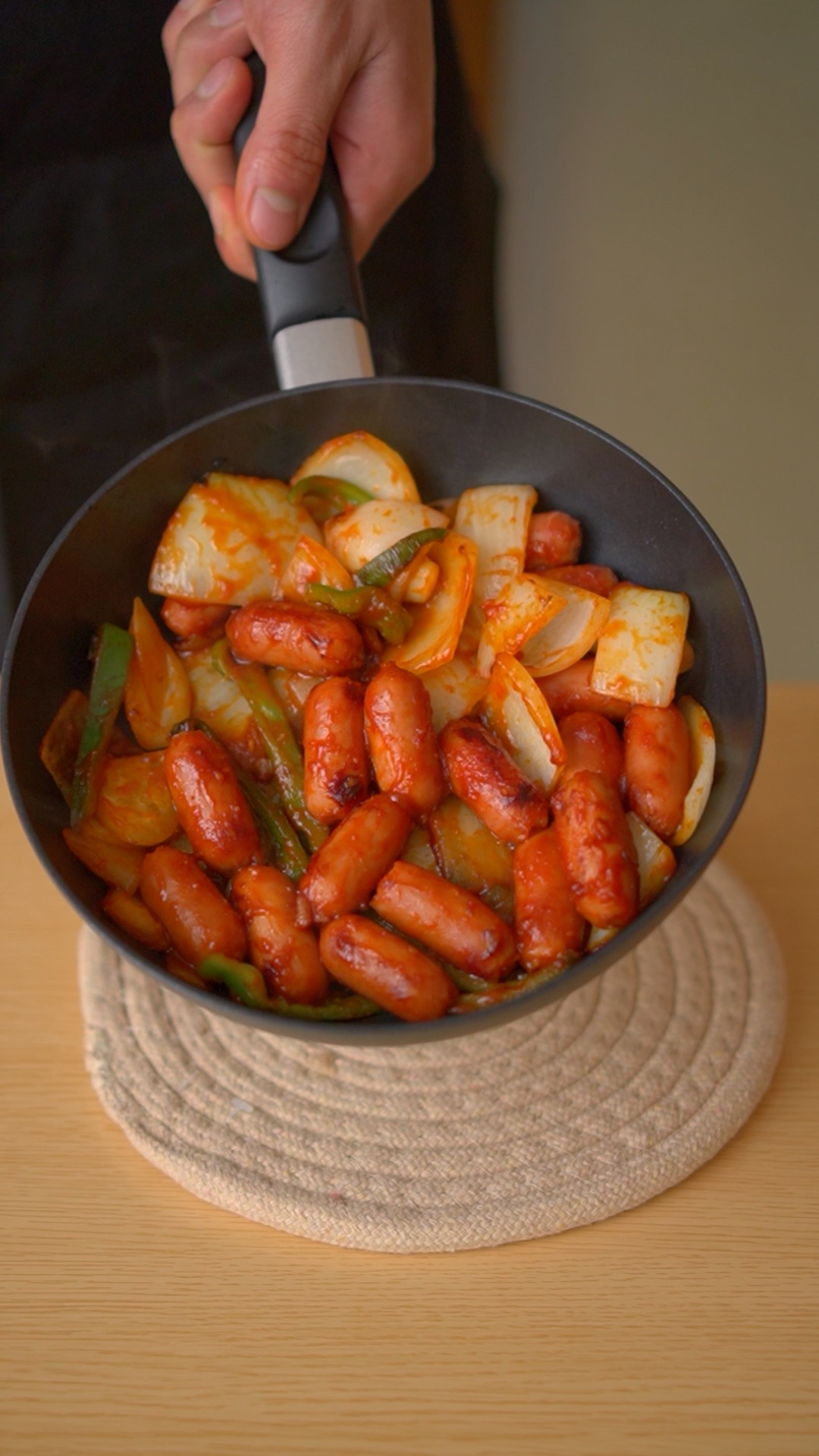 | · 양념 2 (아빠 숫가락) : 고추장 1, 돈까스 소스2 + 소세지 80 (비엔나 소세지 12개 정도) -> 1인분 |
